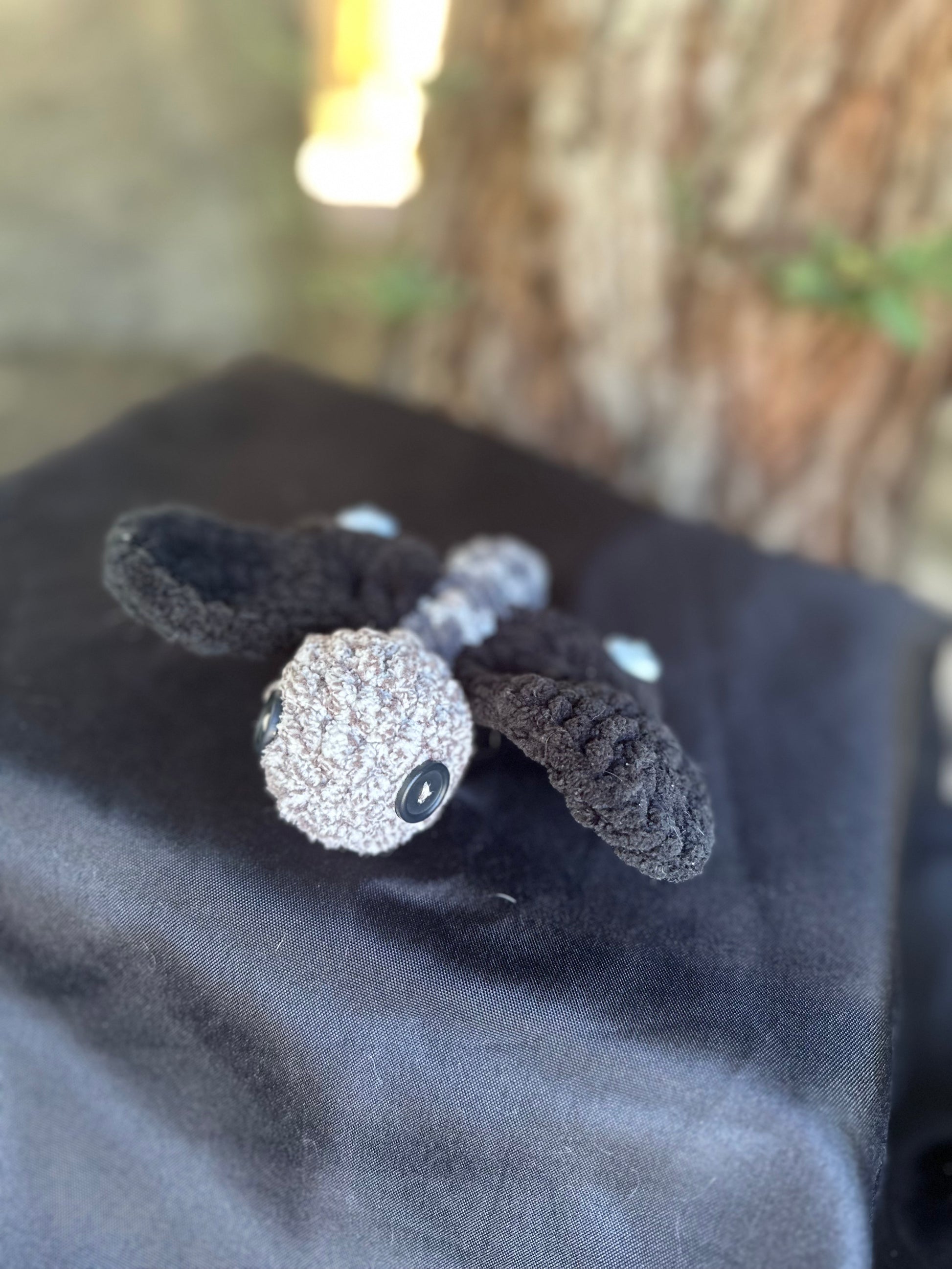 A dragon fly with jack skellington skulls on the wings